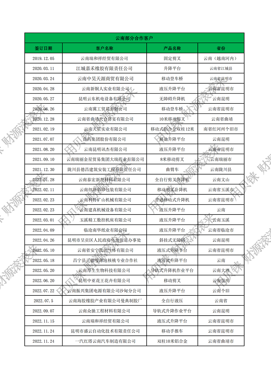• 云南部分客戶