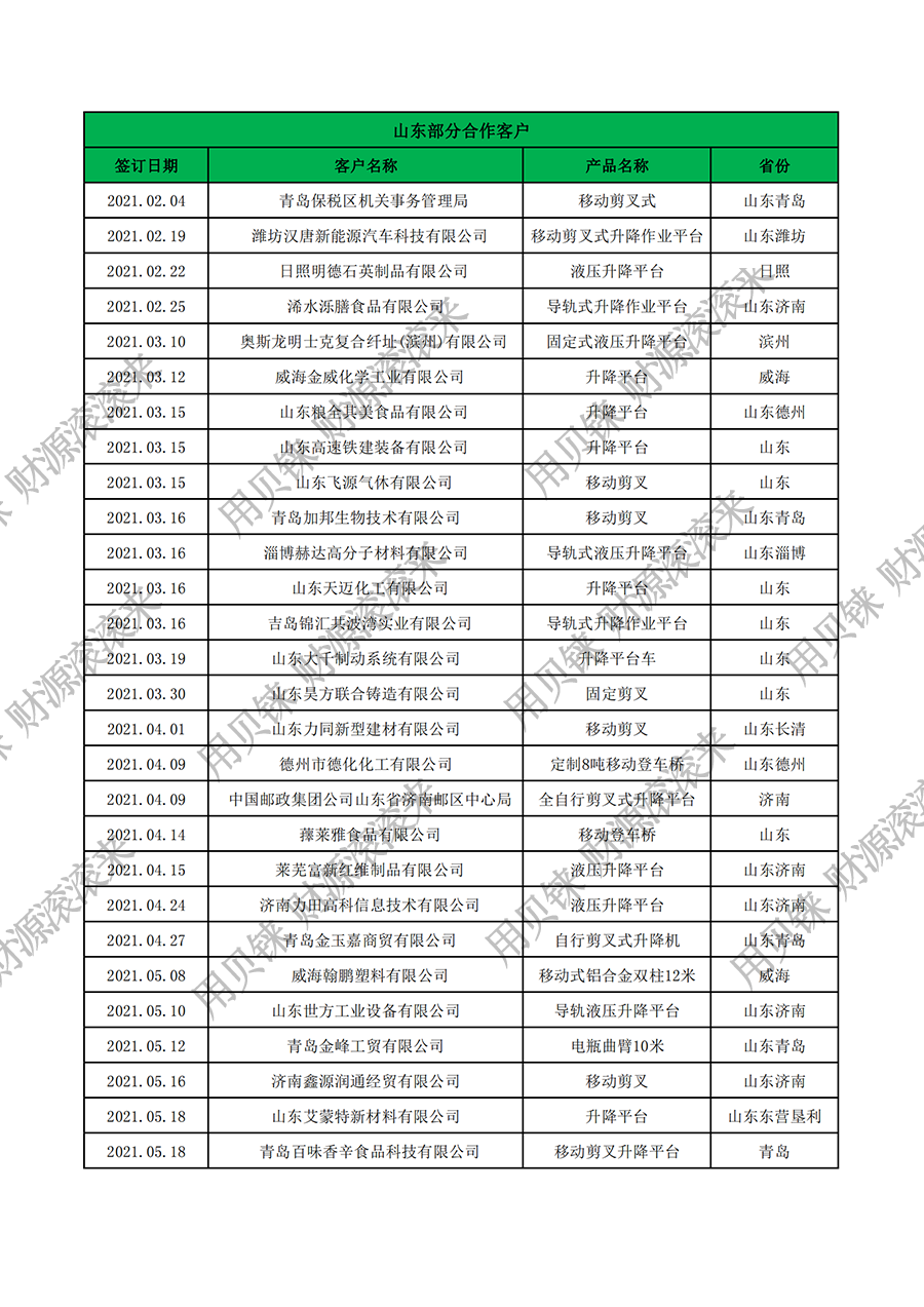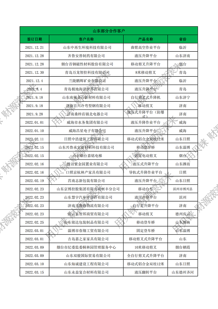 • 山東部分客戶1