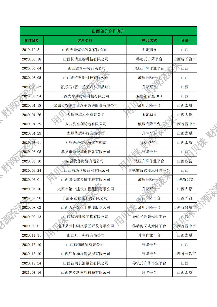 • 山西部分客戶