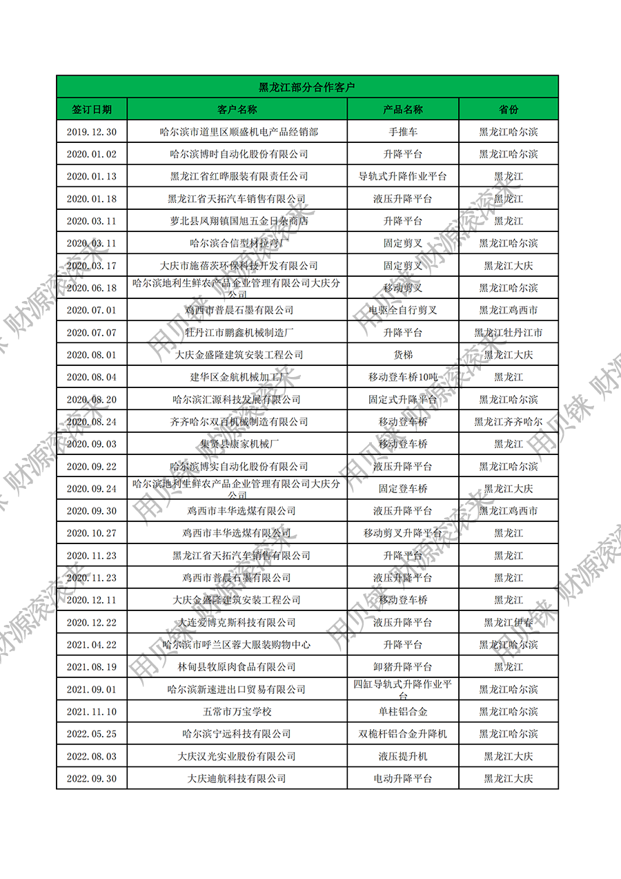 • 黑龍江部分客戶