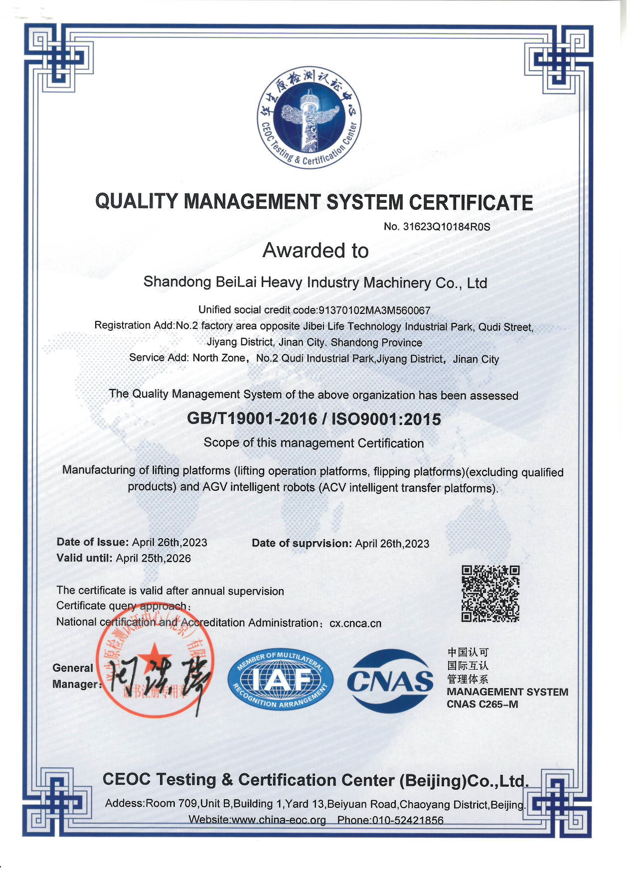• 質量體系認證書